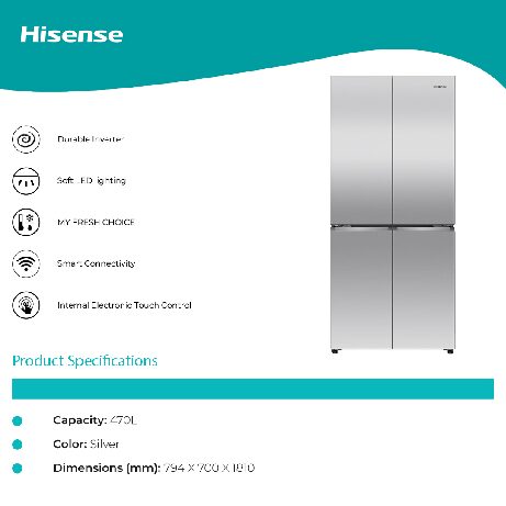 The Hisense 4 Door Fridge 470L is an innovative and spacious appliance designed to meet the needs of modern households.